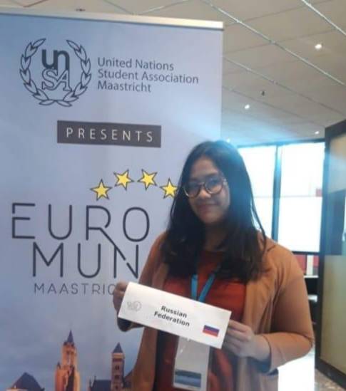 In this EuroMun, Diponegoro University delegates competed with different councils. One of them, Dinda Putri Mulia, represented Russia in the International Atomic and Energy Association (IAEA).