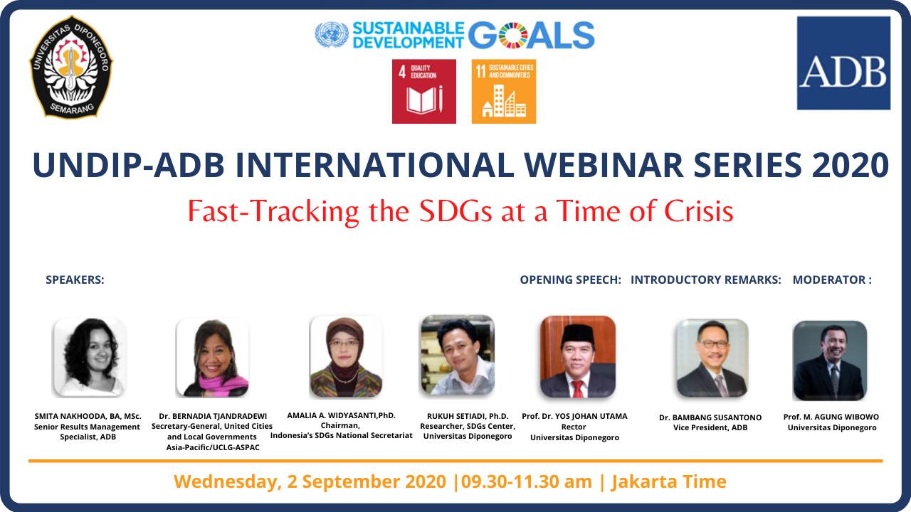 The Diponegoro University Rating Office in collaboration with the Asian Development Bank (ADB) has again held the Undip-ADB 2nd International Webinar which is still part of the Undip SDGs Series 2020 Webinar with the theme “Fast-Tracking The SDGs at a Time of Crisis”. The speakers at this webinar are experts in their fields who came from various countries.