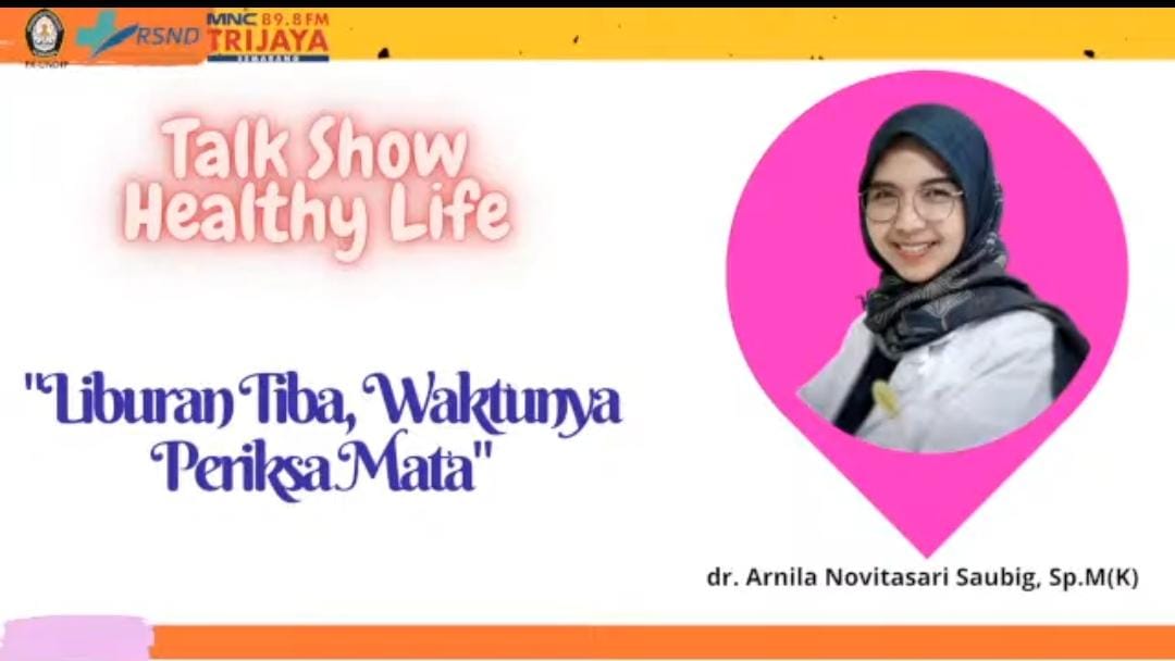 In the talk show held by PKRS RSND on Thursday, June 23, 2022, dr. Arnila Novitasari Saubig, Sp.M(K) as the speaker discussed the importance of having an early eye check up. According to her, holidays are the right time for parents to take their children for an eye check up.