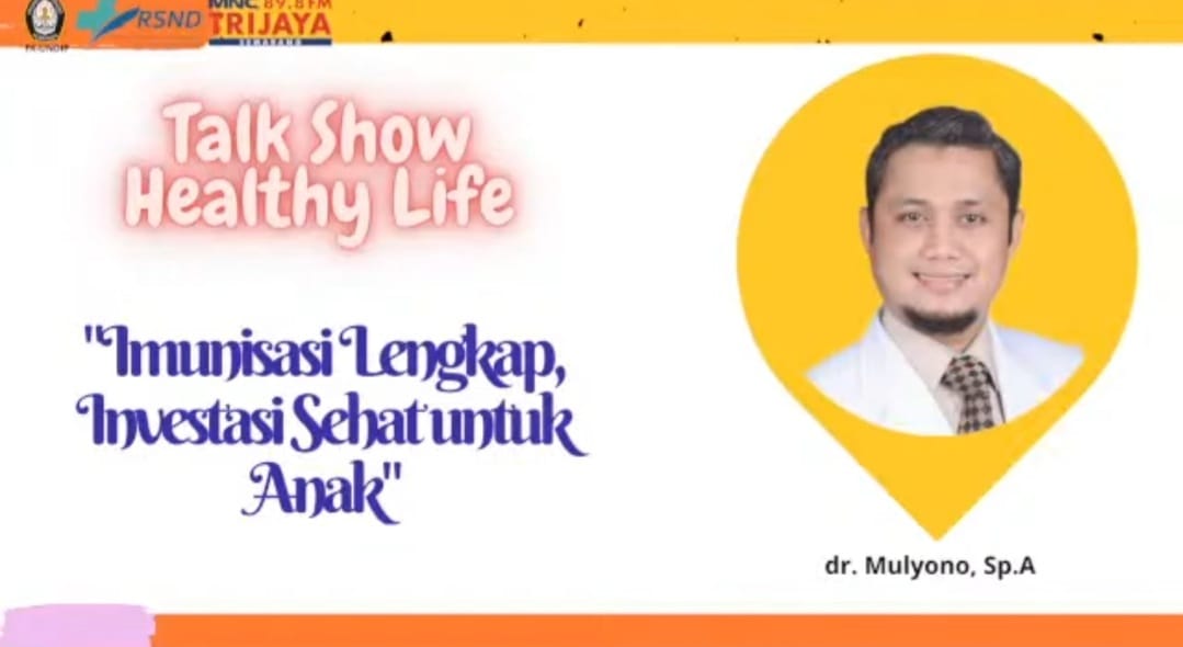 On Thursday, June 30, 2022 PKRS RSND held a Healthy Live Talk Show with a discussion about the importance of child immunization, inviting dr. Mulyono, Sp.A as the speaker. According to him, the government is currently promoting the BIAN (National Child Immunization Month) program with the aim of catching up on immunizations for children during the pandemic, this is because there are still many children who should have done complete immunization but have not received it because many immunization providers are closed. According to dr. Mulyono, the BIAN program or National Child Immunization Month is a good moment to immunize children. Basic immunizations for children are also easy to obtain at health centers and hospitals for free or for a fee.