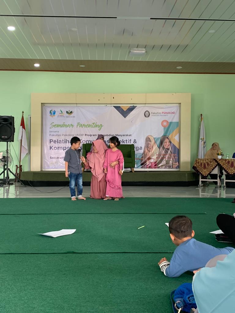 The community service activity held for parents of students has the theme “Effective Communication Training and Personal Competence for Children in the Family.” The community service activities aim to provide education to parents regarding ways to build effective communication and self-competence in children within the family. Community service activities were implemented in the form of delivering parenting lectures with material on effective communication and self-competence of children in the family to students’ parents. The material for this service was presented by the Community Service Team, Faculty of Psychology, Diponegoro University.