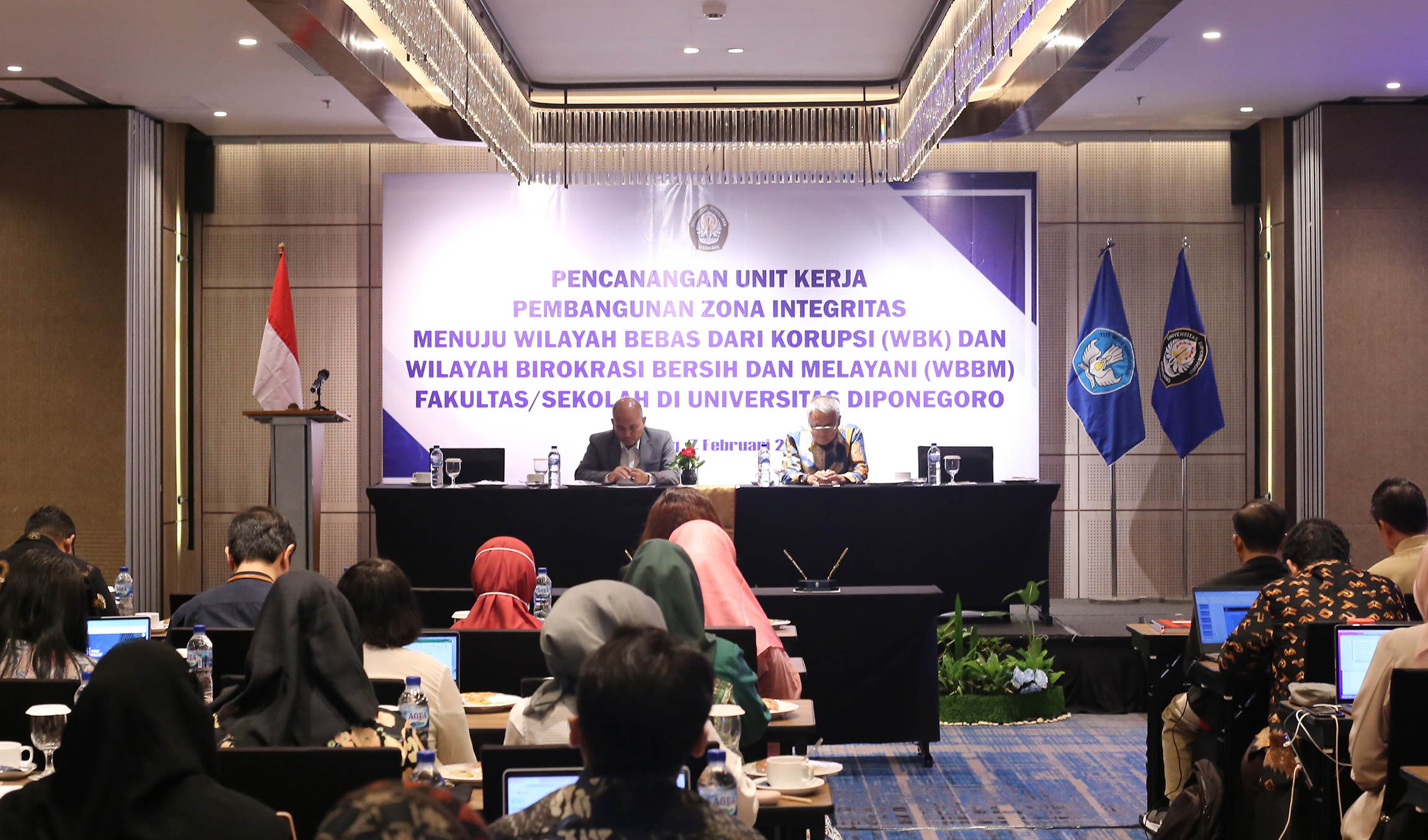 Diponegoro University held an activity on Designing the Integrity Zone Development Work Unit and Assisting in the Completion of Evaluation Worksheets. This activity took place on February 7, 2024, at Aruss Hotel Semarang and was attended by the Vice Rector for Resources, Deans, Heads of the General and Financial Bureau, Chairs and Coordinators of the Undip Bureaucratic Reform Team, and the Undip Integrity Zone Internal Assessment Team.