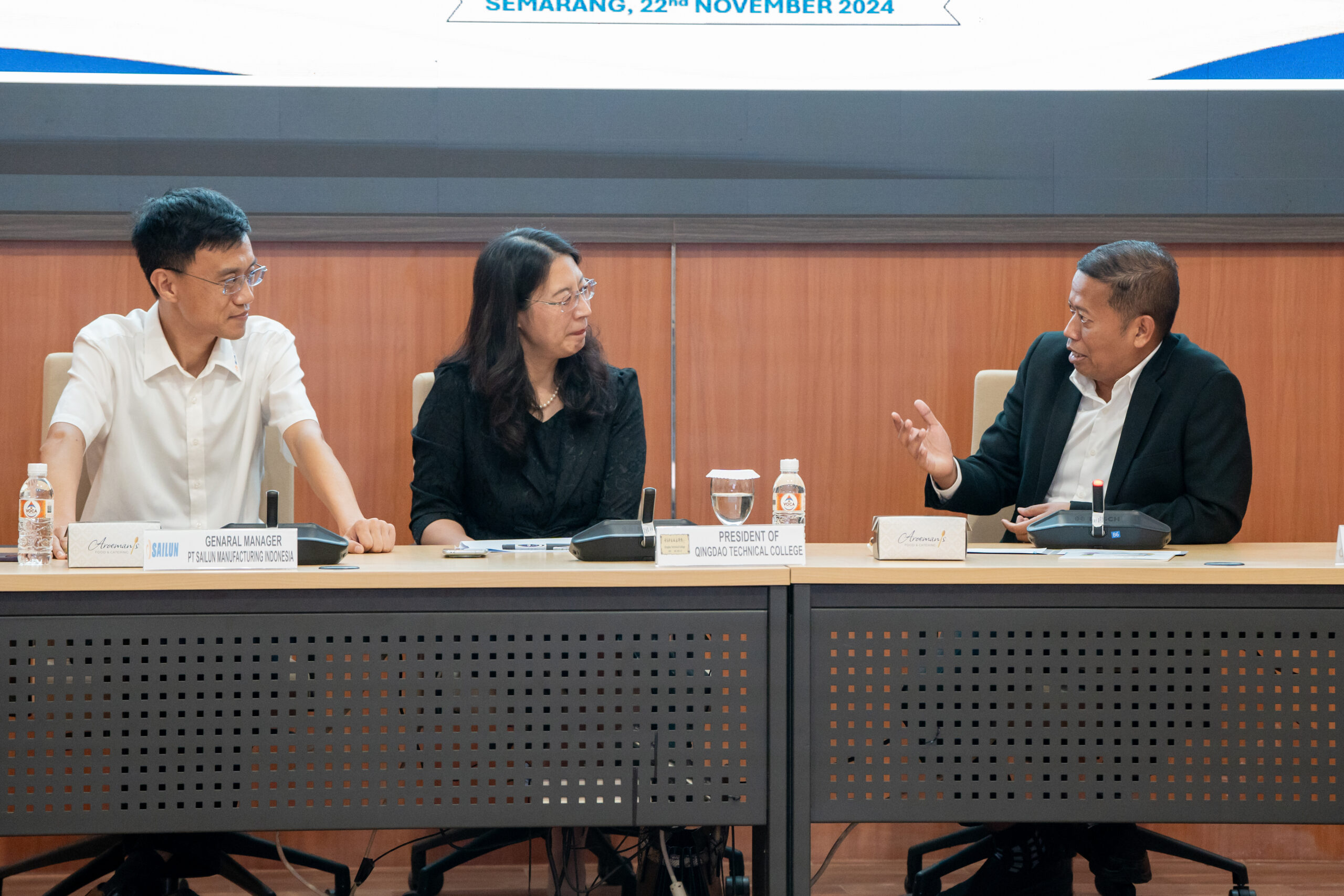 Universitas Diponegoro (UNDIP) has officially established a partnership with Qingdao Technical College, China, and Sailun Group Co., Ltd, China. This collaboration was marked through the signing of a Memorandum of Understanding (MoU) by UNDIP Rector, Prof. Dr. Suharnomo, S.E., M.Si.; President of Qingdao Technical College, Xing Guonglu; and General Manager of PT Sailun Manufacture Indonesia, Wang Dianying. The event was held in the Rector’s Meeting Room, Widya Puraya Building, UNDIP, on Friday, November 22, 2024.