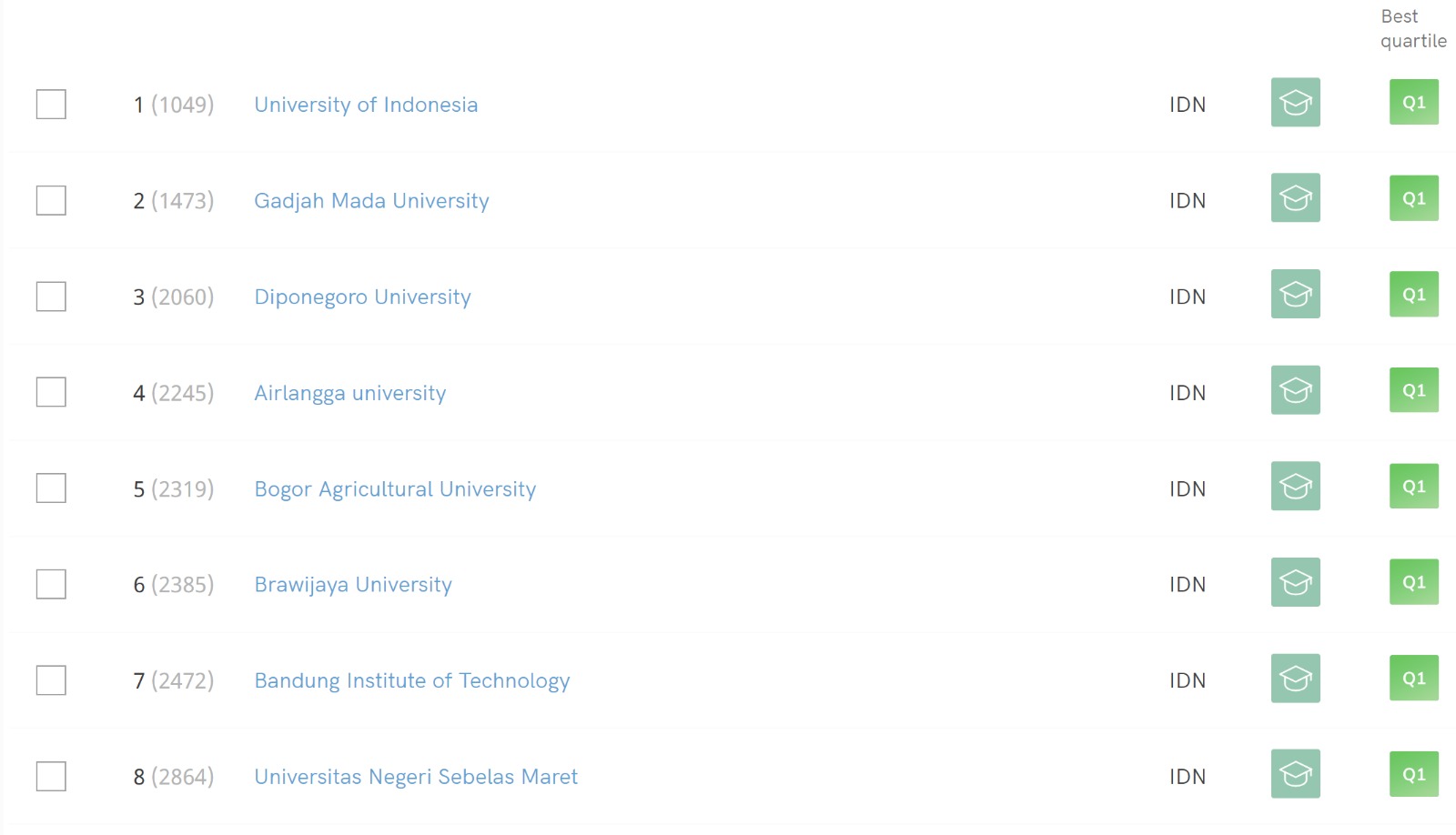 In the SIR 2024 list, UNDIP ranked third nationally and 2060th globally, surpassing prominent Indonesian institutions such as Universitas Airlangga (UNAIR), Institut Pertanian Bogor (IPB), Universitas Brawijaya, Institut Teknologi Bandung (ITB), and Universitas Sebelas Maret (UNS).