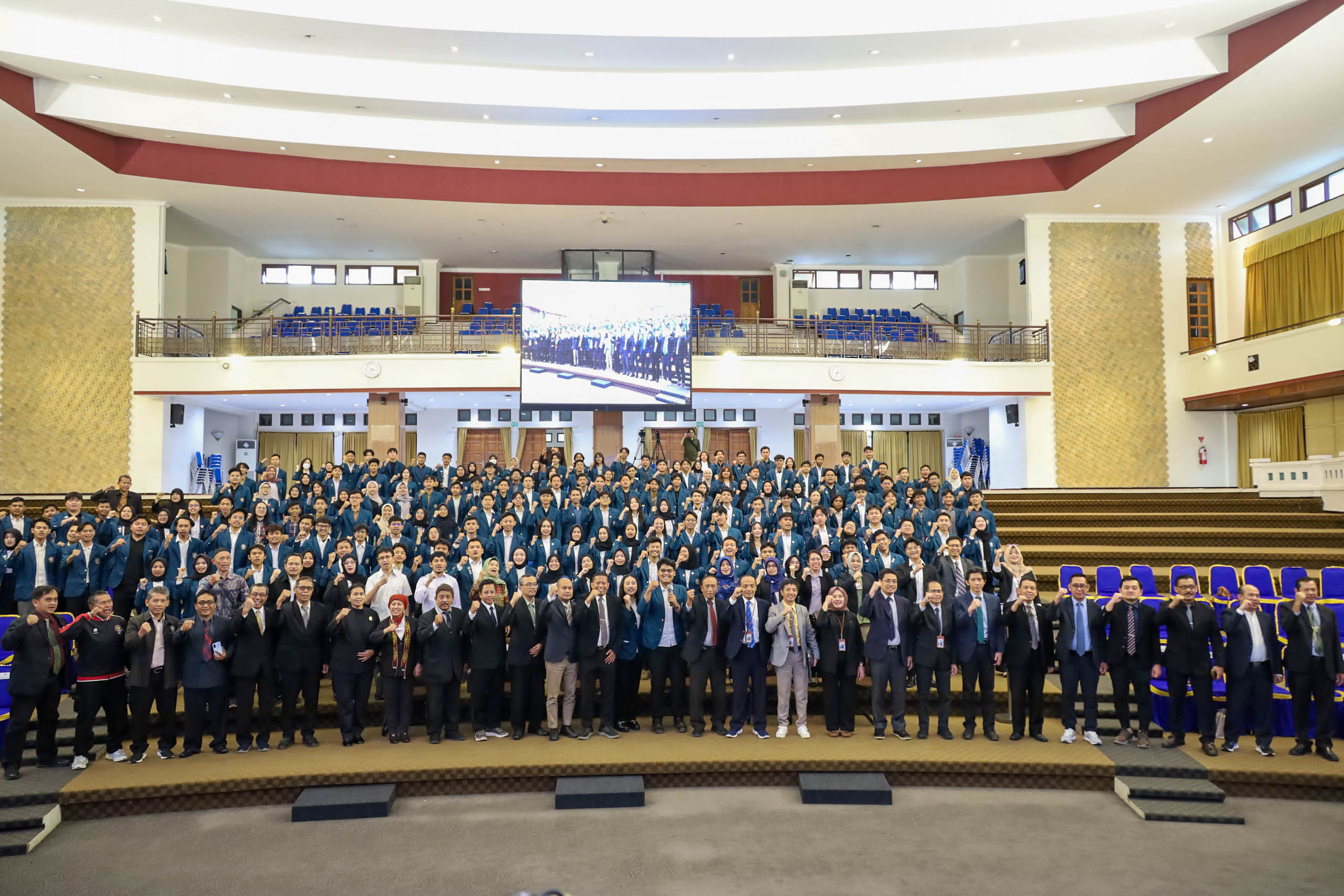 At the end of his speech, Prof. Suharnomo urged student activists to be trustworthy leaders and exemplary role models. He emphasized that “leadership is action, not just a position” and encouraged them to demonstrate their leadership capacity as the best leaders. He also stressed the need to shift perspectives when transitioning from an individual role to leading a team, underlining that action speaks louder than words. “May words and actions align, and may intellectual intelligence be paired with noble character, as these are the keys to future success,” he concluded.