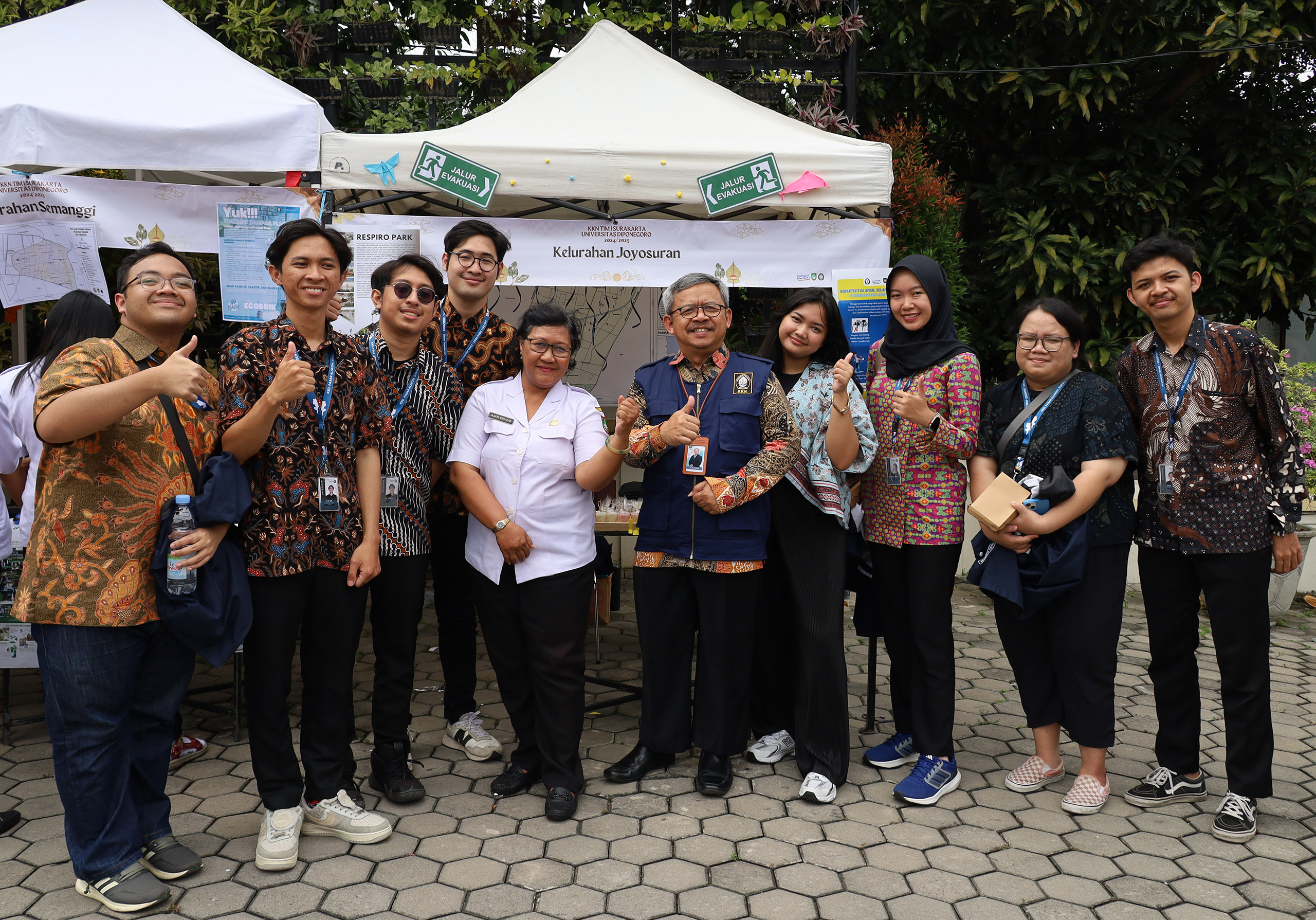 The exhibition was attended by several distinguished guests, including Director of Student Affairs and Alumni, Edy Surahmad, S.Pd., M.Si.; Secretary of the UNDIP Community Service Center (P2KKN), Satriyo Adhy, S.Si., M.T.; Representative from the Surakarta Regional Research and Innovation Agency (BRIDA), Dr. Ghulam Fathul Amri, S.H., S.ST., M.E., M.E.Sy., M.M., M.Kn., M.T.; Jebres Sub-District Head, Drs. Samsu Tri Wahyudi, M.Si., along with representatives from local government agencies, law enforcement, and university faculty members.