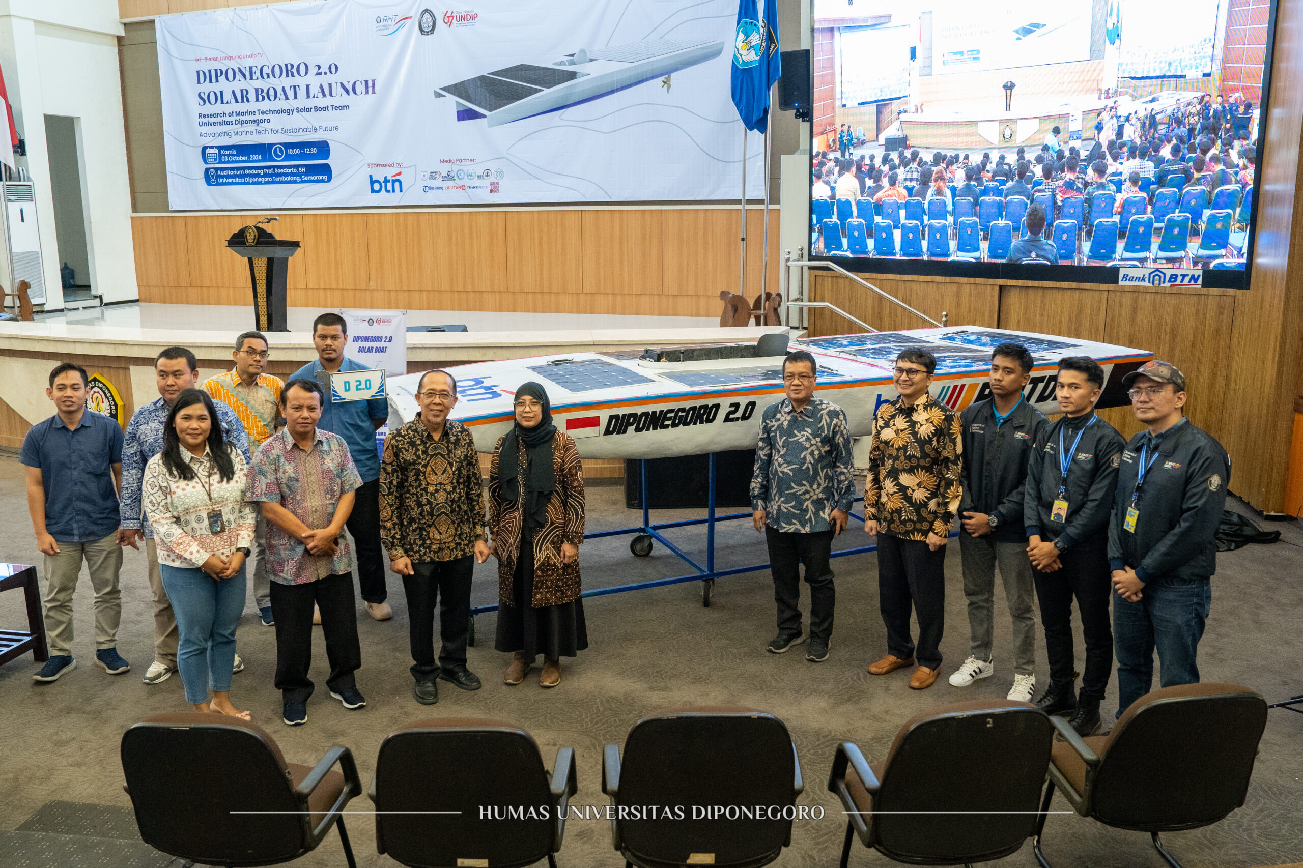 UNDIP, (3/10)—The Research of Marine Technology (RMT) Team of Universitas Diponegoro 2024 proudly presented its latest creation at the launch event of the Solar Boat