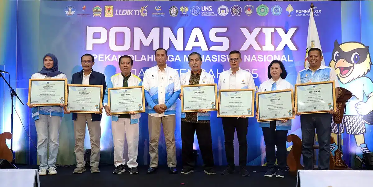 UNDIP, Semarang (26/9) – Wakil Menteri Pendidikan Tinggi, Sains dan Teknologi, Prof. Dr. Fauzan, M.Pd., secara resmi menutup Pekan Olahraga Mahasiswa Nasional (POMNAS) XIX 2025. Penutupan ini menandai berakhirnya ajang kompetisi bergengsi mahasiswa nasional yang mempertemukan atlet dari 36 provinsi untuk bersaing dan menjalin persahabatan melalui olahraga. Closing ceremony POMNAS XIX 2025 berlangsung di Stadium Basket UNDIP Tembalang pada Jumat, 26 September 2025.