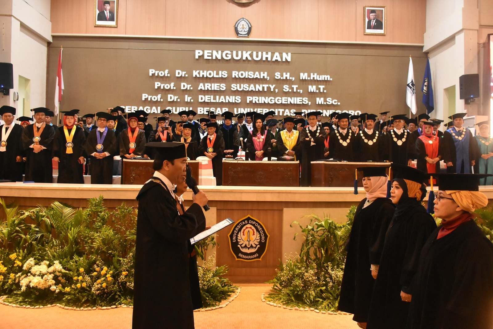 Universitas Diponegoro kembali menambah jumlah guru besar dengan mengukuhkan 3 (tiga) Srikandi yakni Prof. Dr. Kholis Roisah, SH.,M.Hum. dari Fakultas Hukum, Prof. Dr. Aries Susanty, ST.,MT dari Fakultas Teknik, Prof. Dr.Ir. Delianis Pringgenis, M.Sc. dari Fakultas Perikanan dan Ilmu Kelautan bertempat di Gedung Prof. Soedarto, SH kampus Undip Tembalang (Sabtu,2/11).