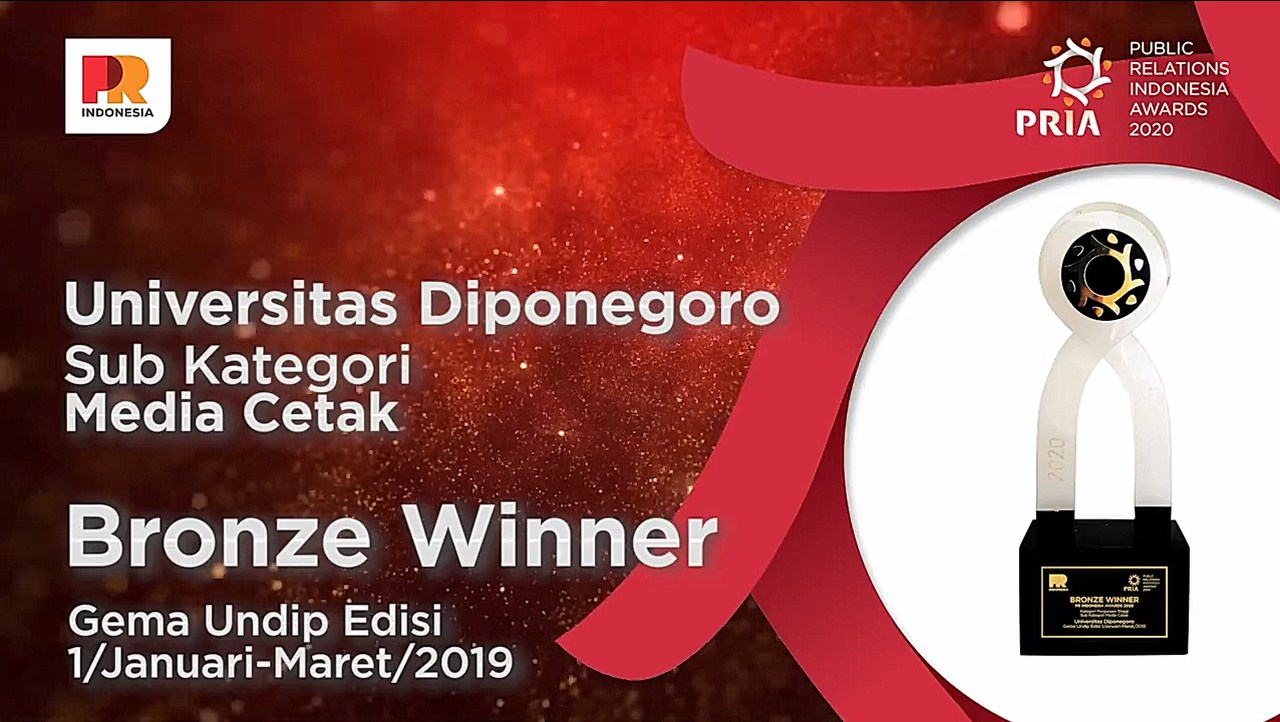 Dalam kompetisi PRIA #5 Tahun 2020 ini, Humas Universitas Diponegoro mengikutsertakan salah satu produknya yaitu majalah cetak Gema Undip Edisi 1 Tahun 2019 dengan cover utama kegiatan Rapat Kerja Nasional (Rakernas) Ristekdikti diselenggarakan awal tahun 2019.