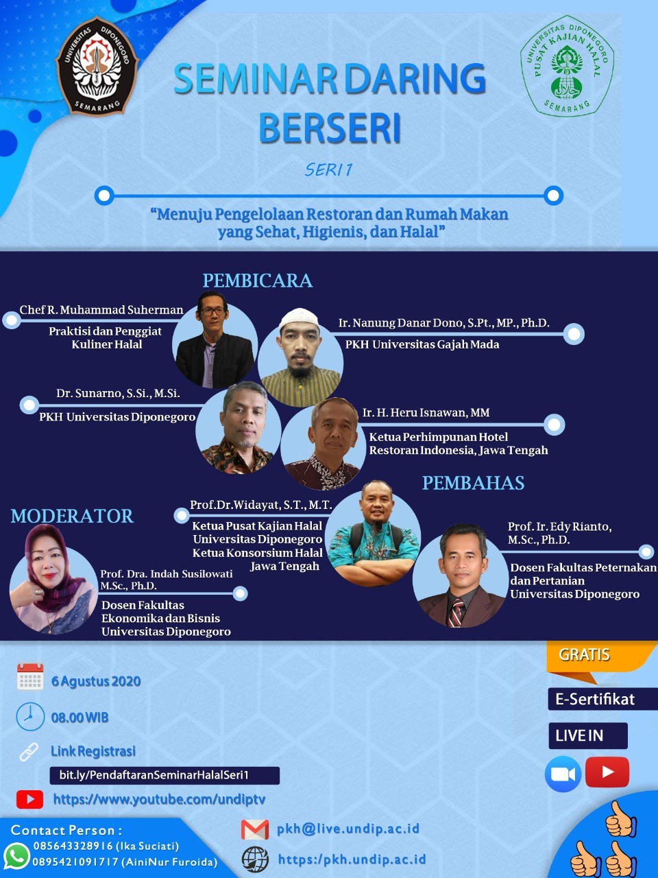 – Link Zoom Cloud Meeting dan E-sertifikat akan diinformasikan melalui Email (pkh@live.undip.ac.id)