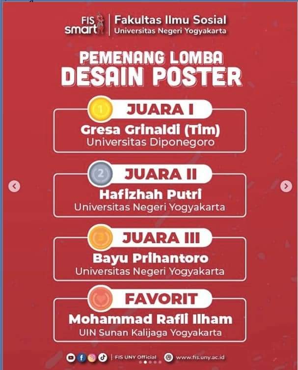 “Ajang ini merupakan Lomba Mahasiswa Tingkat Nasional yang diadakan oleh Fakultas Ilmu Sosial, Universitas Negeri Yogyakarta dalam rangka Dies Natalis UNY yang ke-57, dengan mengusung tema Transformasi Budaya Belajar Dalam Adaptasi Kebiasaan Baru di Era Pandemi” tutur Gresa selaku ketua tim.