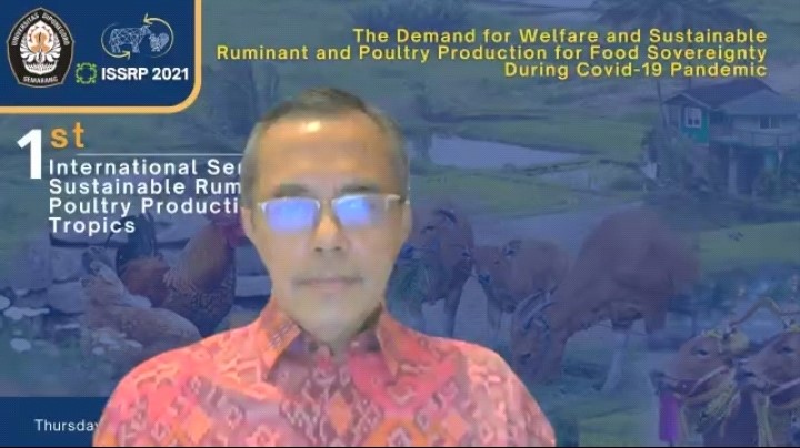 SEMARANG – Departemen Peternakan Fakultas Peternakan dan Pertanian (FPP) Universitas Diponegoro (UNDIP) menggelar seminar internasional ISSRP (International Seminar on Sustainabel Ruminant and Poultry Production in the Tropics) 2021 yang mengupas ketahanan pangan khususnya penyediaan protein hewani dalam kaitannya dengan kondisi Pandemi Covid-19. Dalam kegiatan ini dibahas sebanyak 36 makalah, yang dikupas secara intens dalam 3 kelompok.