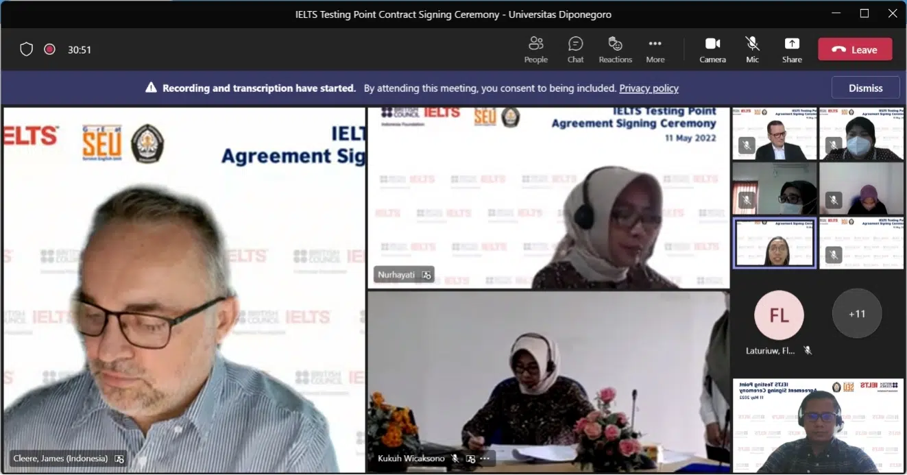 Dalam rangka mengembangkan program layanan kebahasaan, SEU (Service English Unit) terus berupaya menjalin kemitraan dengan berbagai pihak terkait. Setelah sebelumnya menjalani berbagai tahapan kerjasama, pada hari ini (11/05/2022) SEU FIB meneken kontrak kerjasama dengan British Council, sebuah yayasan internasional yang fokus pada pengajaran Bahasa Inggris, pengujian, dan pengembangan keterampilan pengajar. Nantinya kerjasama ini berupa penyelenggaraan tes IELTS berbasis komputer.