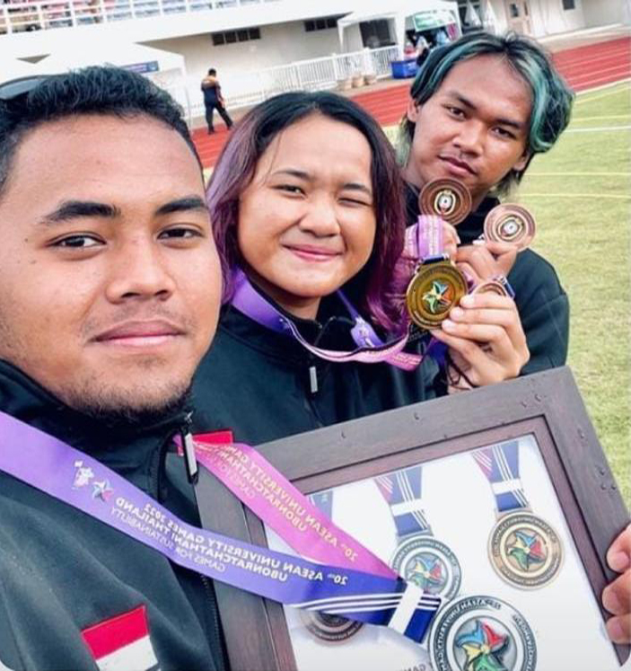 Rezza Octavia mahasiswi Ilmu Kelautan Fakultas Perikanan dan Ilmu Kelautan Universitas Diponegoro (Undip) kembali menyumbangkan 1 medali emas di cabang olahraga (cabor) panahan nomor Recurve Individual Women dan 1 medali perunggu nomor recurve beregu campuran (Recurve Mixed Team) pada ASEAN UNIVERSITY GAMES (AUG) 2022 mewakili Universitas Diponegoro (31/7). AUG ke XX merupakan acara olahraga bergengsi dua tahunan yang melibatkan atlet dari universitas negara-negara anggota ASEAN dimulai sejak 26 Juli hingga 6 Agustus 2022, di Ubon Ratchathani, Thailand. Sebanyak 23 cabor yang dilombakan pada ajang ini