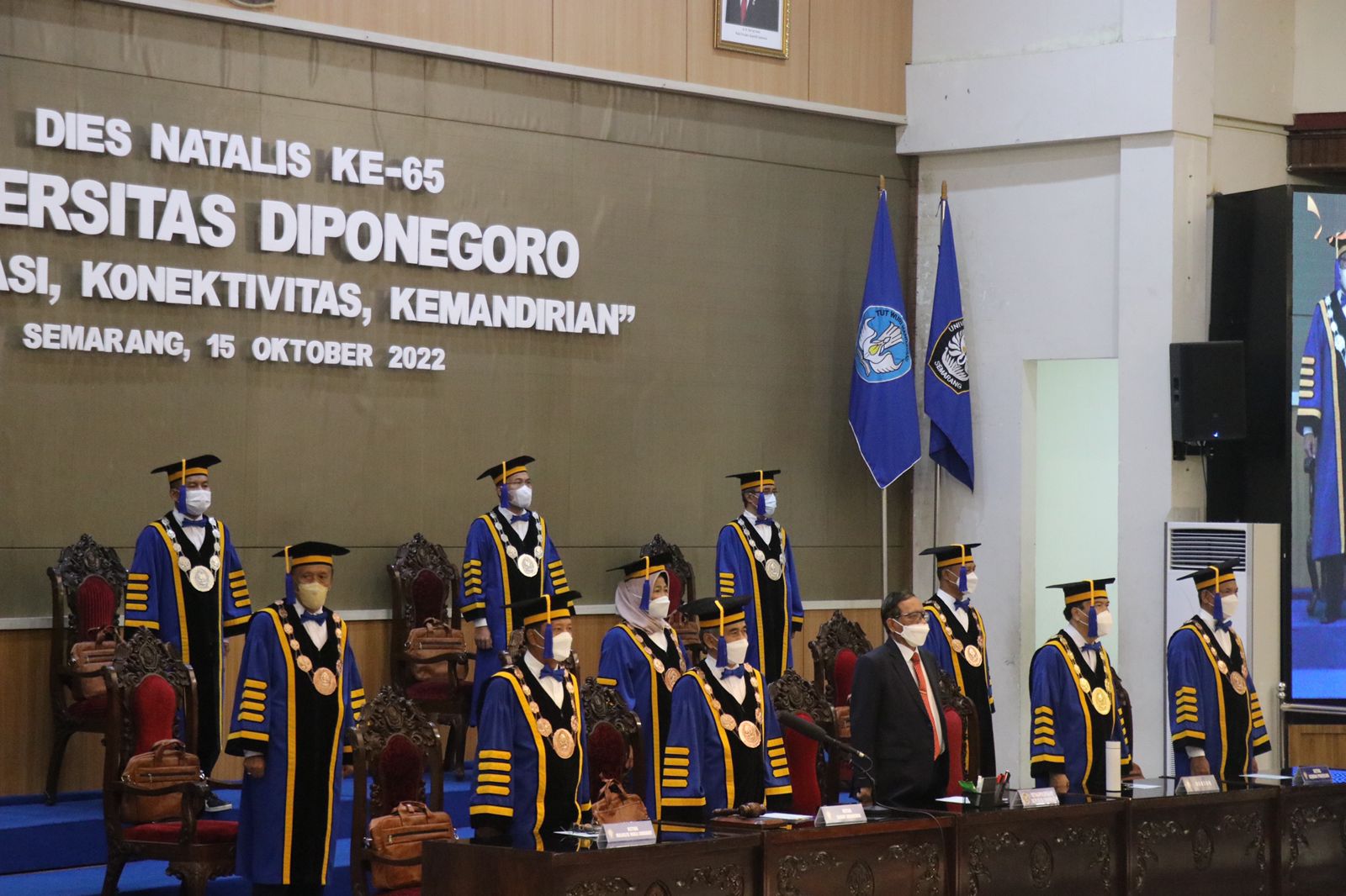 Semarang-Jawa Tengah(15/10). Universitas Diponegoro menggelar upacara Dies Natalis ke-65 Universitas Diponegoro bertempat di gedung Prof. Soedarto, SH kampus Undip Tembalang pada Sabtu(15/10). Perayaan Dies Natalis ke-65 ini mengusung tema “Kolaborasi, Konektivitas, Kemandirian”. Menghadirkan Menko Polhukam RI Prof. Dr. Moh. Mahfud MD, SH yang menyampaikan orasi ilmiah berjudul “Negara, Demokrasi dan Kesejahteraan Rakyat.