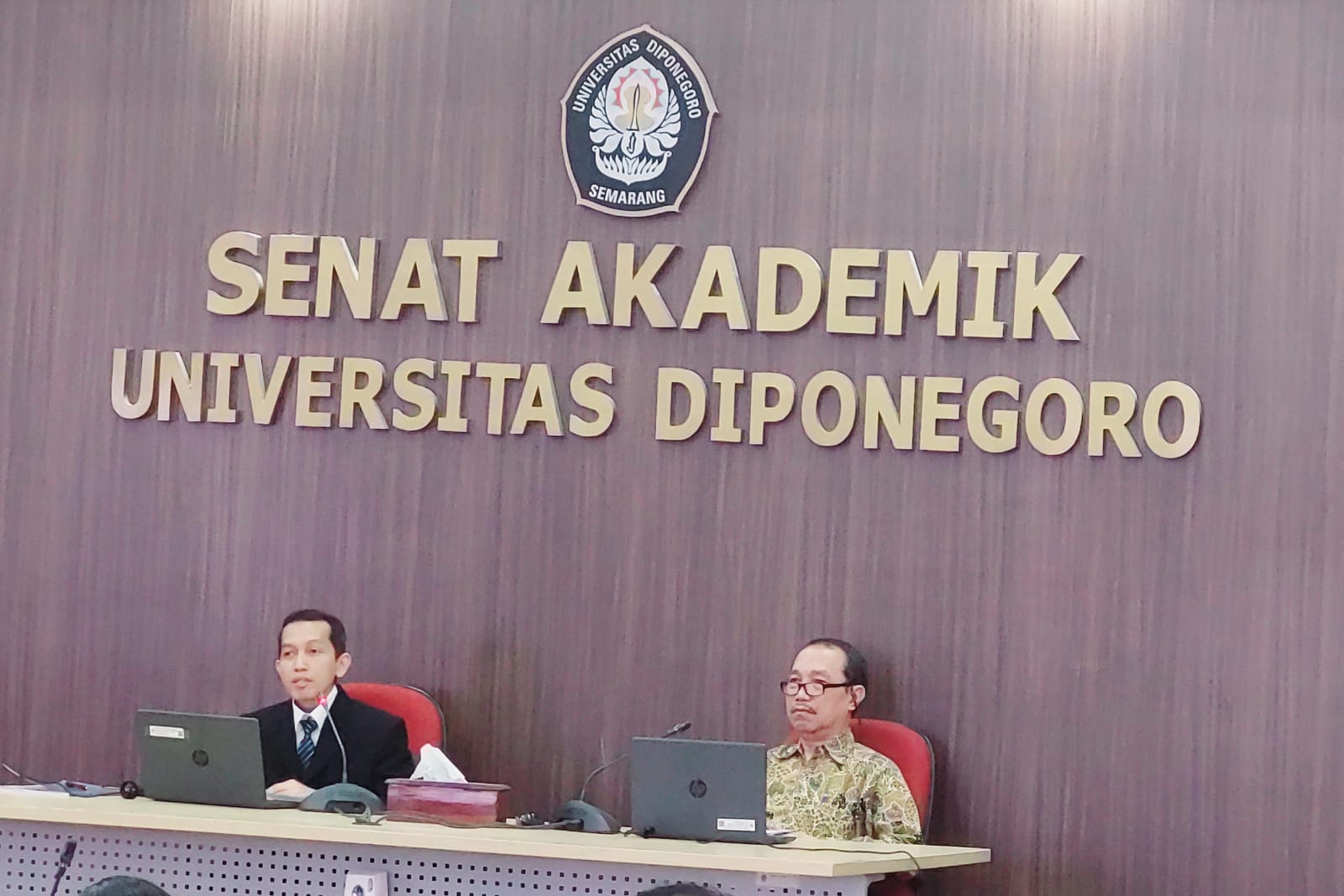 Universitas Diponegoro menggelar presentasi makalah ilmiah tiga calon guru besar Undip yang diselenggarakan oleh Dewan Profesor Universitas Diponegoro, Selasa (20/6). Ketiga calon guru besar tersebut adalah Dr. Alamsyah, S.S., M.Hum.(Fakultas Ilmu Budaya), Dr. Aprilina Purbasari, S.T. (Fakultas Teknik), dan Dr. Mohammad Tauviqirrahman, S.T., M.T. (FT).