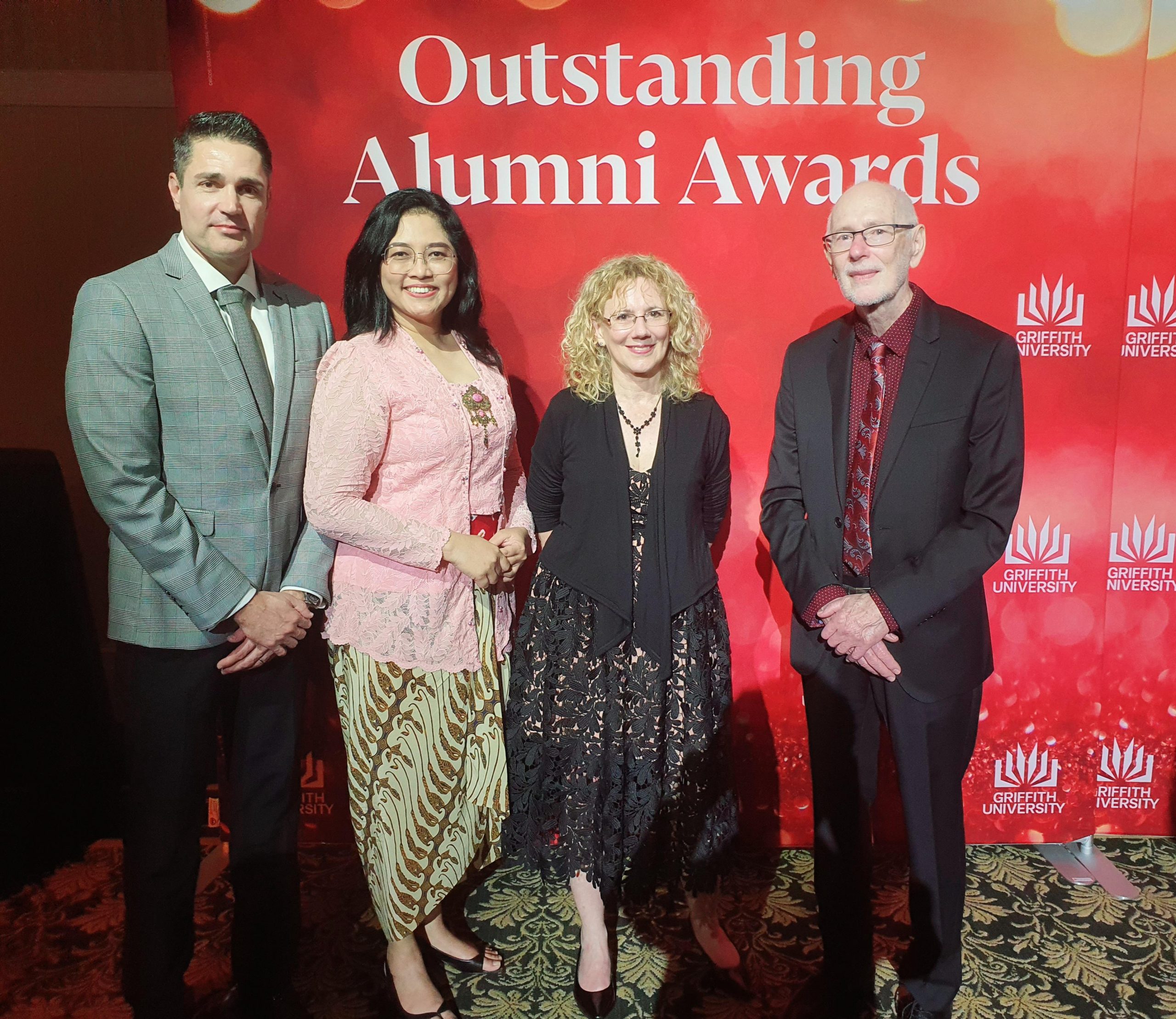 Pemenang Griffth University Outstanding Alumnus 2023 for Health Group: Lesley Richardson (Outstanding First Peoples Alumnus), Profesor Dian Ratna Sawitri (Outstanding International Alumnus), Colleen Jen (Outstanding Alumnus), dan dr. Dan Wilson (Outstanding Young Alumnus).