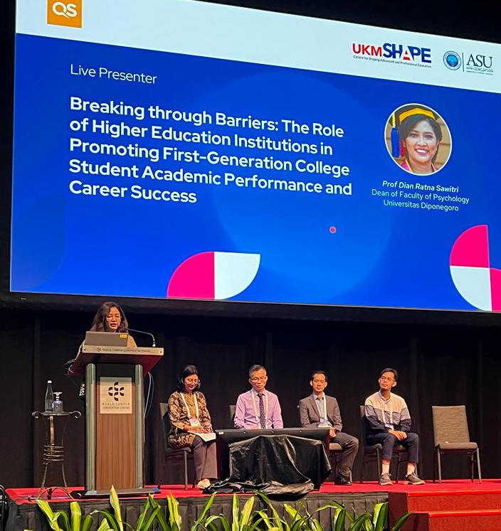 Pada hari ketiga, yaitu pada 9 November 2023, Prof Sawitri melakukan live presentation dengan membawakan judul, “Breaking through barriers: The role of higher education institutions in promoting first-generation college student academic performance and career success”. Prof Sawitri mengemukakan bahwa ajang ini merupakan wadah untuk mempromosikan expertise akademisi, meluaskan jejaring internasional, dan mengoptimalkan Upaya universitas-universitas khususnya di Asia Pasifik untuk bisa memberikan dampak bermakna bagi masyarakat global. Prof Sawitri juga melakukan kunjungan ke Universiti Kebangsaan Malaysia dan bertemu dengan Deputy Director International Relations Centre serta perwakilan Centre for Research in Psychology and Human Well-Being untuk melakukan inisiasi kerja sama. Hari ketiga ditutup dengan Rangking Session and Dinner dengan pimpinan universitas, para speaker, dan penyelenggara. Partisipasi aktif Fakultas Psikologi Undip dalam ajang bergensi ini diahrapkan dapat mewujudkan visi fakultas sebagai pusat pengembangan psikologi berbasis keluarga Indonesia yang adaptif terhadap perbahan jaman di Asia Tenggara pada 2025 dan mendukung visi Undip menjadi universitas riset yang unggul.