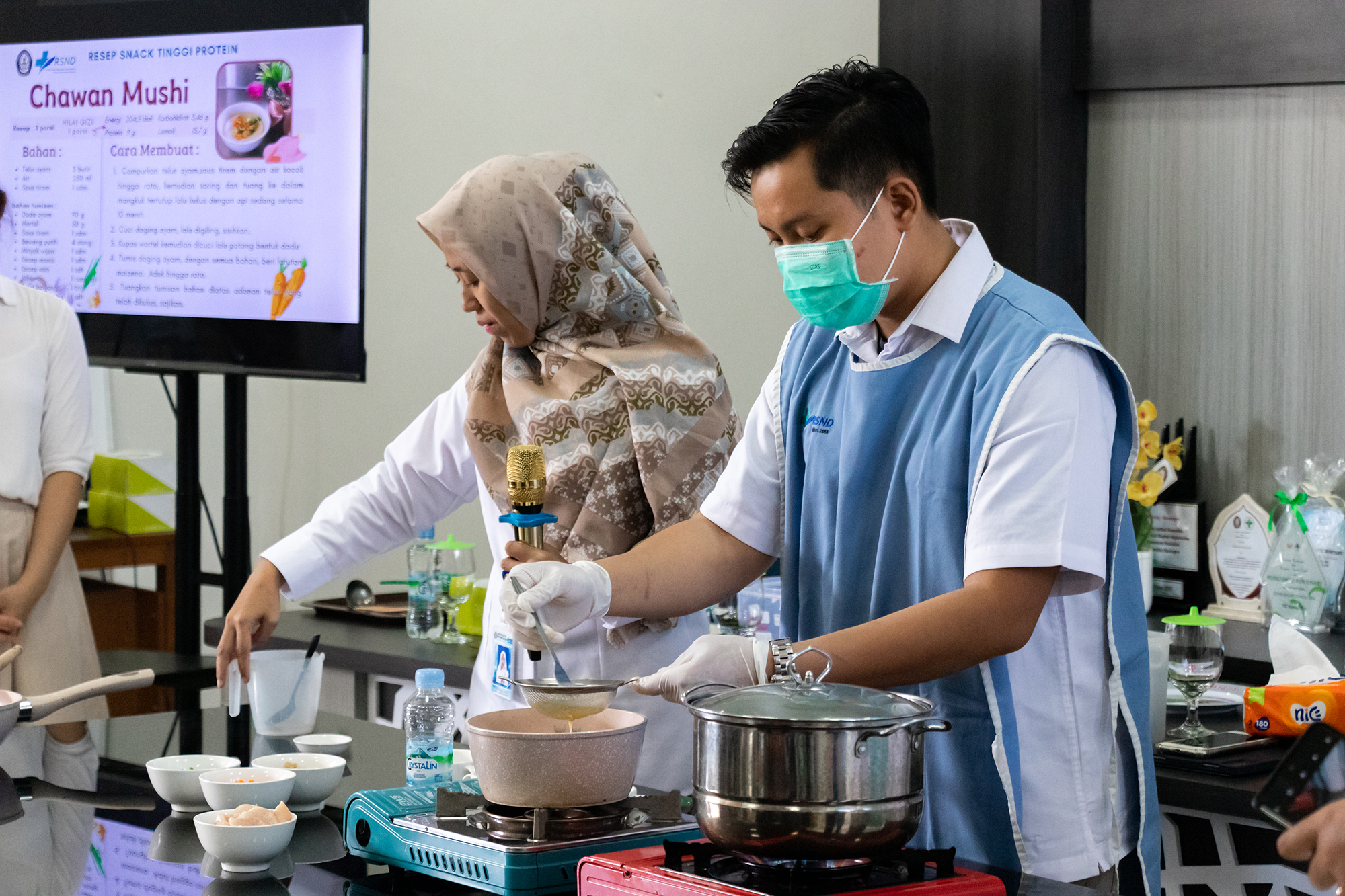 Kegiatan ini juga menampilkan demo masak yang bertujuan memberikan wawasan praktis kepada ibu-ibu kader puskesmas mengenai cara memasak makanan MP-ASI yang tinggi protein hewani untuk mencegah stunting. Menu yang ditampilkan dalam demo masak adalah chawan mushi dan puding pisang.