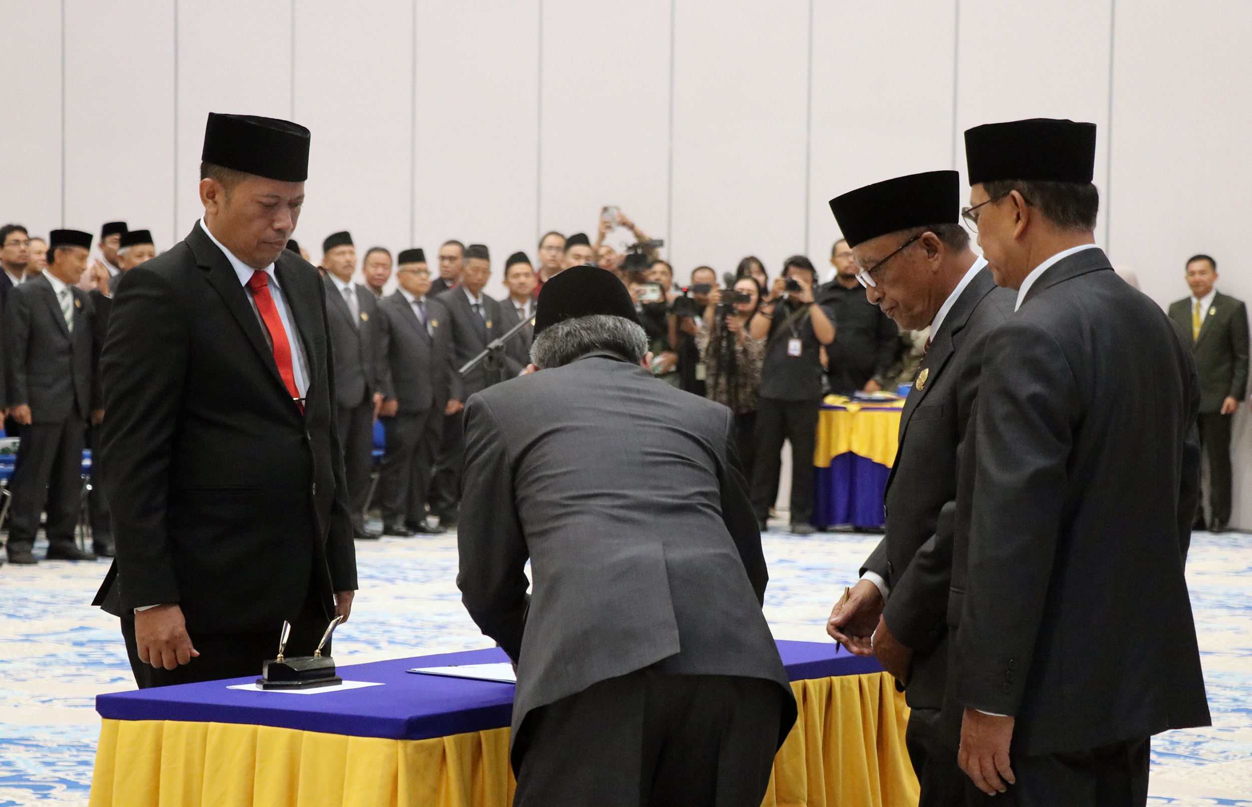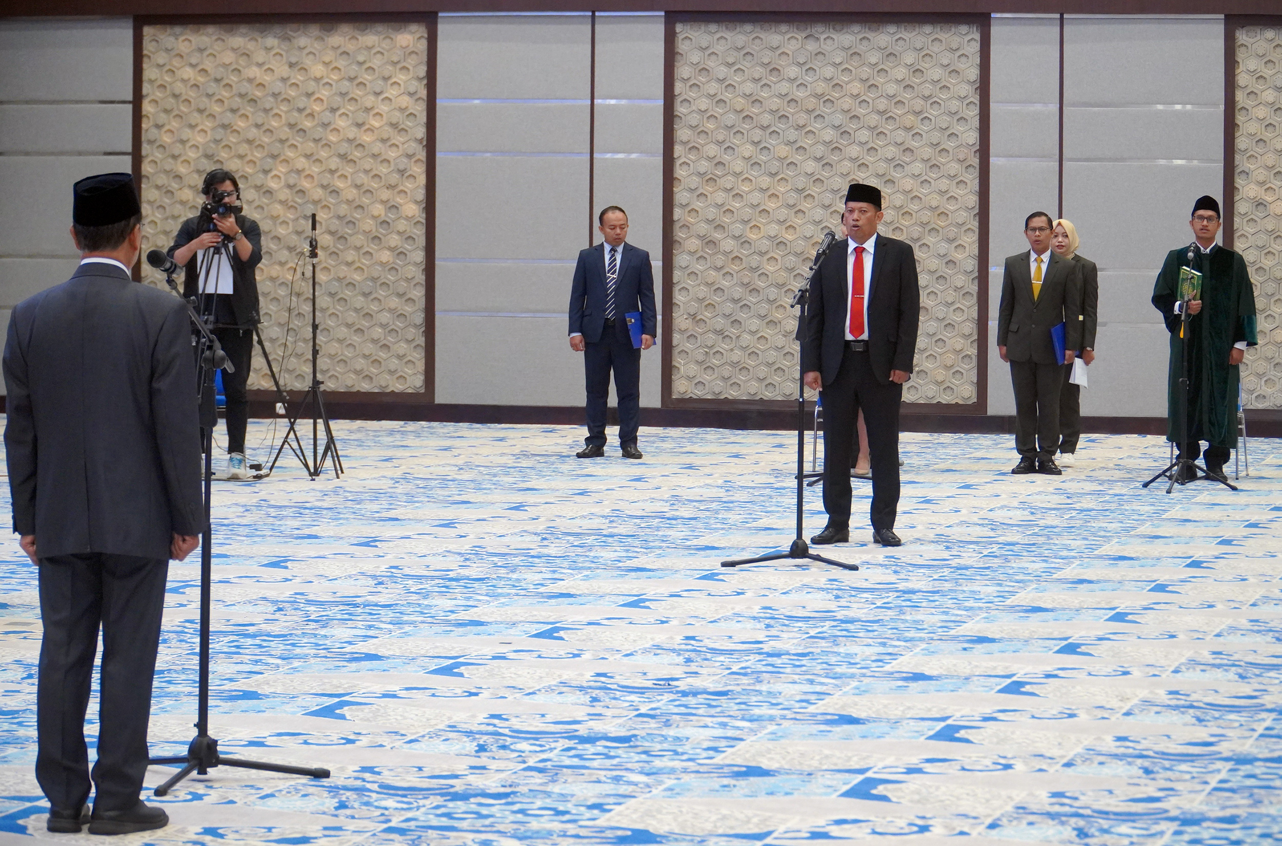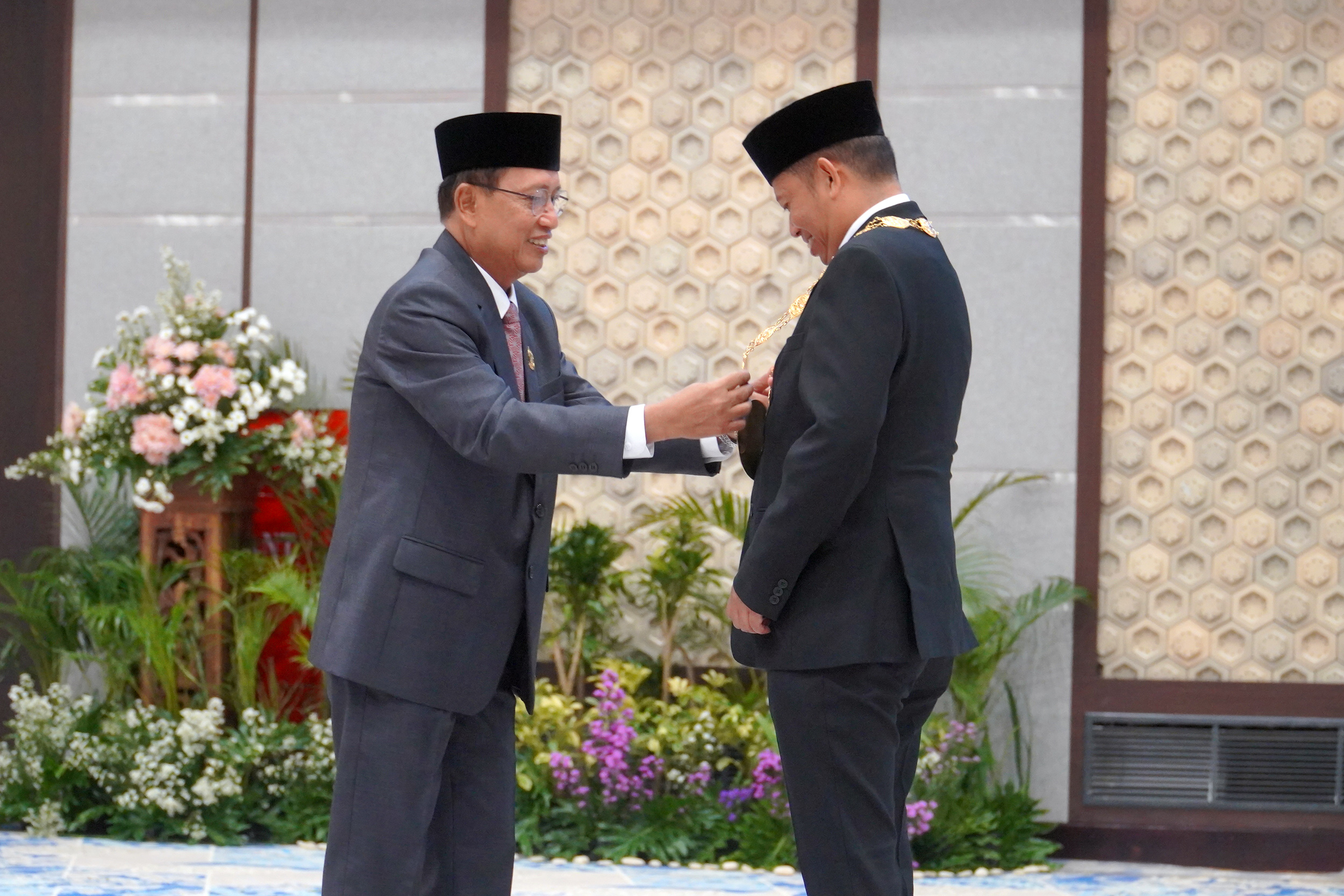 Semarang – Jawa Tengah (29/4). Ketua Majelis Wali Amanat Universitas Diponegoro Prof. Drs. H. Mohamad Nasir, Ak., M.Si., Ph.D. melantik Prof. Dr. Suharnomo, S.E., M.Si. sebagai Rektor Universitas Diponegoro periode tahun 2024-2029 bertempat di Muladi Dome Gedung Serba Guna (GSG) kampus UNDIP Tembalang. Prof. Dr. Suharnomo, S.E., M.Si. resmi dilantik menjadi Rektor Universitas Diponegoro periode tahun 2024-2029 menggantikan Prof. Dr. Yos Johan Utama, S.H., M.Hum. yang telah habis masa jabatannya.