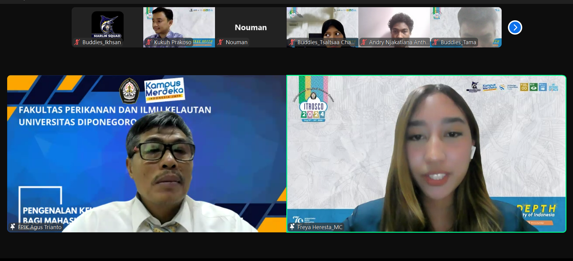 Fakultas Perikanan dan Ilmu Kelautan (FPIK) Universitas Diponegoro membuka acara “The 6th International Tropical Summer Course (ITroSCo) 2024” pada Senin, 19 Agustus 2024. Dengan mengusung tema “Diverse Depth: Exploring the Marine Biodiversity of Indonesia”, acara ini ditujukan untuk mahasiswa internasional (pemegang paspor non-Indonesia. Acara ini dihadiri oleh 65 peserta dari 13 negara di 4 benua, serta 9 Buddies.