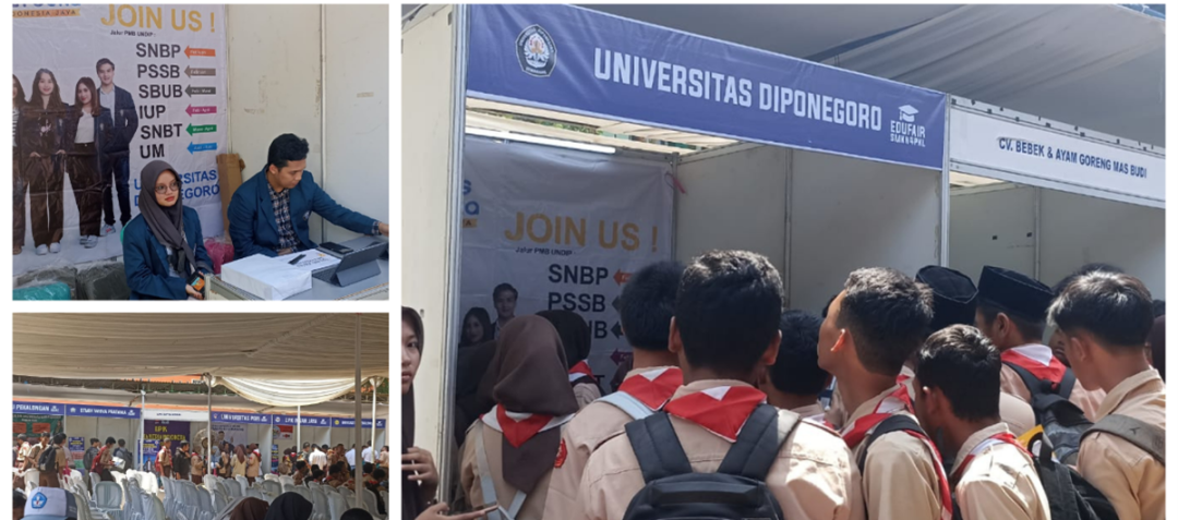 Setelah acara dibuka, masing-masing perwakilan peserta Pameran diberikan kesempatan selama 5 menit untuk memberikan gambaran singkat mengenai profil masing-masing Universitas dan Instansi. Universitas Diponegoro sebagai salah satu Perguruan Tinggi Negeri yang ada di Kota Semarang mengirimkan tim Sosialisasi dan Promosi yang terdiri dari 4 orang untuk memberikan informasi dan pengetahuan mengenai berbagai macam jalur PMB, Biaya Pendidikan, Beasiswa, pilihan prodi pada jenjang Sarjana, Fasilitas, Lingkungan Kampus dan keunggulan yang dimiliki oleh UNDIP. Siswa-siswi sangat antusias mengunjungi stand UNDIP, hal ini terlihat dari Stand UNDIP yang tidak pernah sepi dari pengunjung.