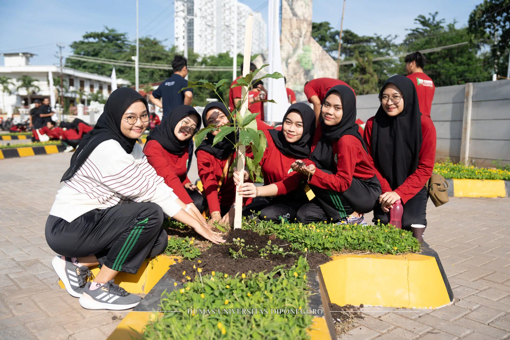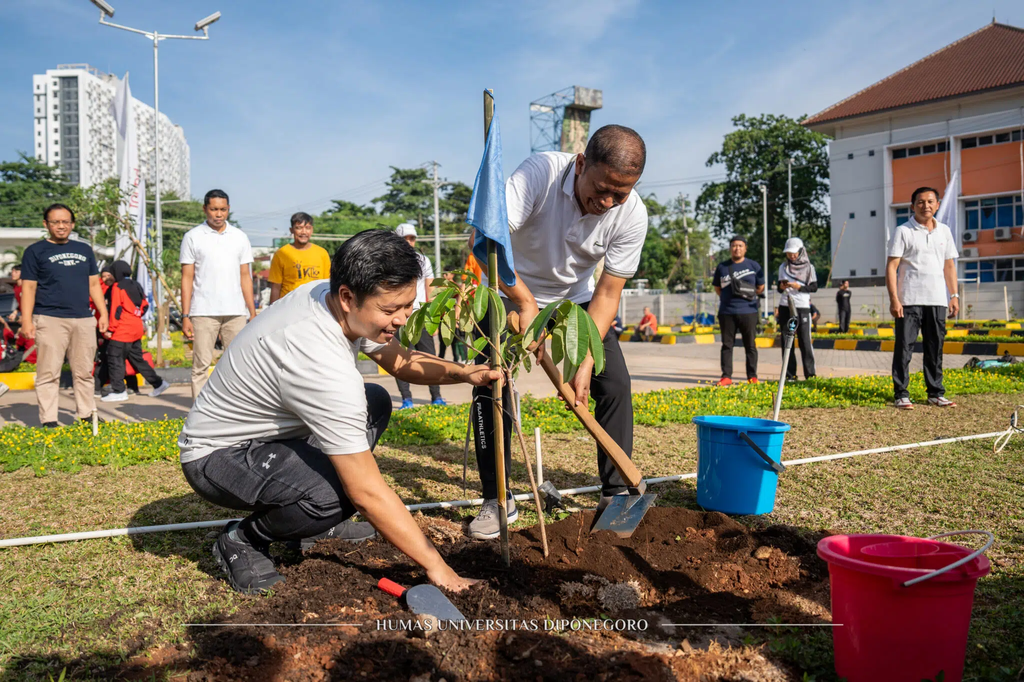 Semarang – Jawa Tengah (11/10). Dalam rangkaian kegiatan Dies Natalis ke-67, Universitas Diponegoro menggelar berbagai kegiatan, diantaranya penanaman pohon bersama Bakti Lingkungan Djarum Foundation (BLDF) di lingkungan kampus UNDIP, Tembalang. Penanaman ini melibatkan lebih dari 500 mahasiswa UNDIP yang menanam 405 bibit pohon di area gedung Muladi Dome, kawasan waduk pendidikan UNDIP serta area Gedung Prof Soedarto.