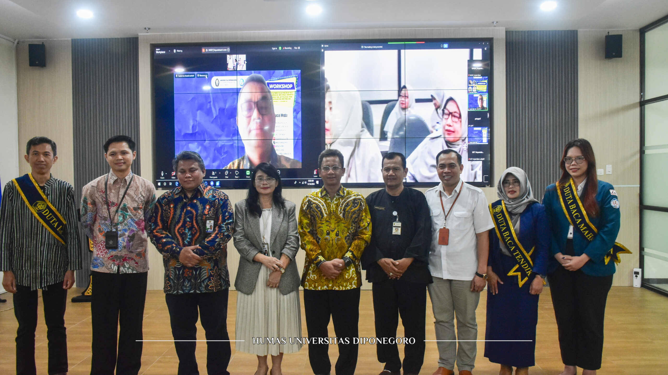UNDIP, Semarang – Dalam upaya peningkatan kepercayaan masyarakat (pemustaka) terhadap kinerja perpustakaan serta menjamin konsistensi kualitas kegiatan perpustakaan khususnya di lingkungan Universitas Diponegoro, UPT Perpustakaan dan UNDIP Press sukses melaksanakan kegiatan asesmen Akreditasi Perguruan Tinggi oleh tim asesor Lembaga Akreditasi Perpustakaan – Perpustakaan Nasional Republik Indonesia (LAP-PNRI) yang berlangsung di R. Pertemuan (lantai 4) UPT Perpustakaan dan UNDIP Press, Kampus UNDIP Tembalang pada Kamis (14/11). Kegiatan ini merupakan agenda rutin 5 tahunan yang diikuti sebanyak 66 peserta secara hybrid dengan platform zoom meeting.