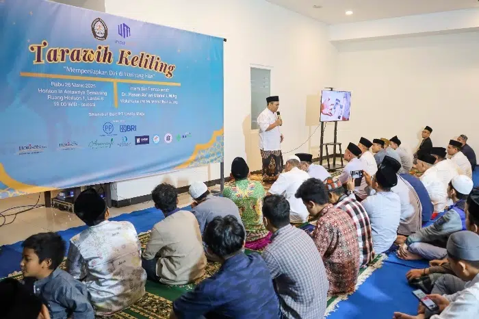 UNDIP, Semarang (27/03) – Masih dalam suasana menyemarakkan bulan suci Ramadan 1446 H, Takmir Masjid Kampus Universitas Diponegoro menyelenggarakan kegiatan Shalat Tarawih Keliling (Tarling) bersama civitas academica UNDIP. Acara ini berlangsung di Horison Inn Antarwirya Kampus UNDIP Tembalang pada Rabu, 26 Maret 2025, dengan PT UNDIP MAJU sebagai shohibul bait (tuan rumah).