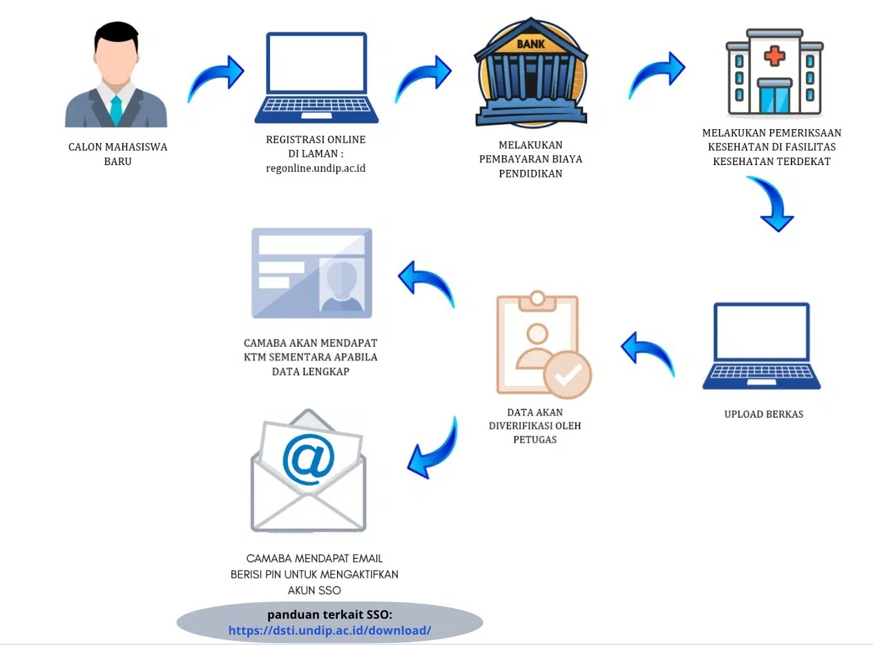 Alur Registrasi Administratif dan Verifikasi Calon Mahasiswa Baru Program Sarjana Jalur Ujian Mandiri TA 2025/2026 sebagai berikut :