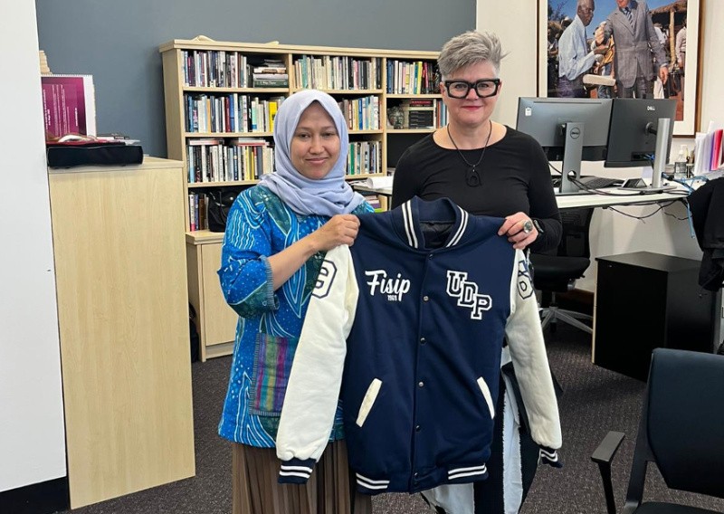 Pada hari kedua kunjungan, delegasi FISIP Undip disambut oleh Professor Heather Zwicker, Executive Dean HASS UQ. Dalam pertemuan tersebut, Prof. Zwicker menerima gift set dari Dekan FISIP Undip, termasuk jaket oranye khas FISIP. Dengan penuh antusias, Prof. Zwicker langsung mengenakan jaket tersebut dan mengirimkan cinderamata resmi UQ untuk Dekan FISIP sebagai bentuk persahabatan.