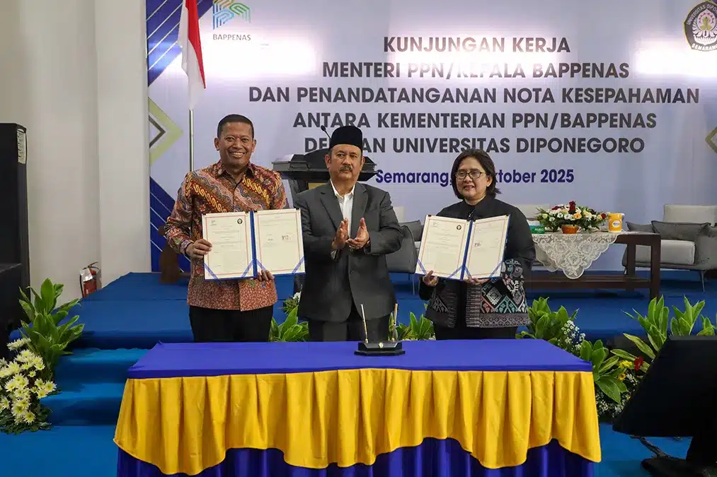 Rektor UNDIP, Prof. Dr. Suharnomo, S.E., M.Si, sangat menyambut baik dan bangga atas kepercayaan Kementerian PPN/Bappenas menjalin kerja sama strategis dengan Universitas Diponegoro. “Kerja sama ini merupakan tonggak penting untuk menjembatani hasil riset perguruan tinggi dengan kebutuhan pembangunan nasional. UNDIP siap berkontribusi melalui riset unggulan, pengembangan teknologi, serta pemberdayaan masyarakat,” ujar Rektor.