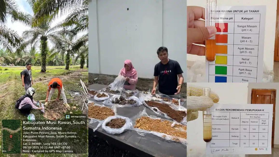 Pengambilan sampel dilakukan pada beberapa lokasi budidaya komoditas utama masyarakat, seperti lahan perkebunan kelapa sawit dan pertanian padi. Proses pengambilan dilakukan dengan menggali tanah sedalam 20–30 cm di bawah permukaan tanah, kemudian mengambil bagian dalam tanah yang merepresentasikan kondisi aktual lapisan olah. Sampel yang diambil kemudian dikeringkan di bawah sinar matahari sebelum dianalisis lebih lanjut di lapangan.