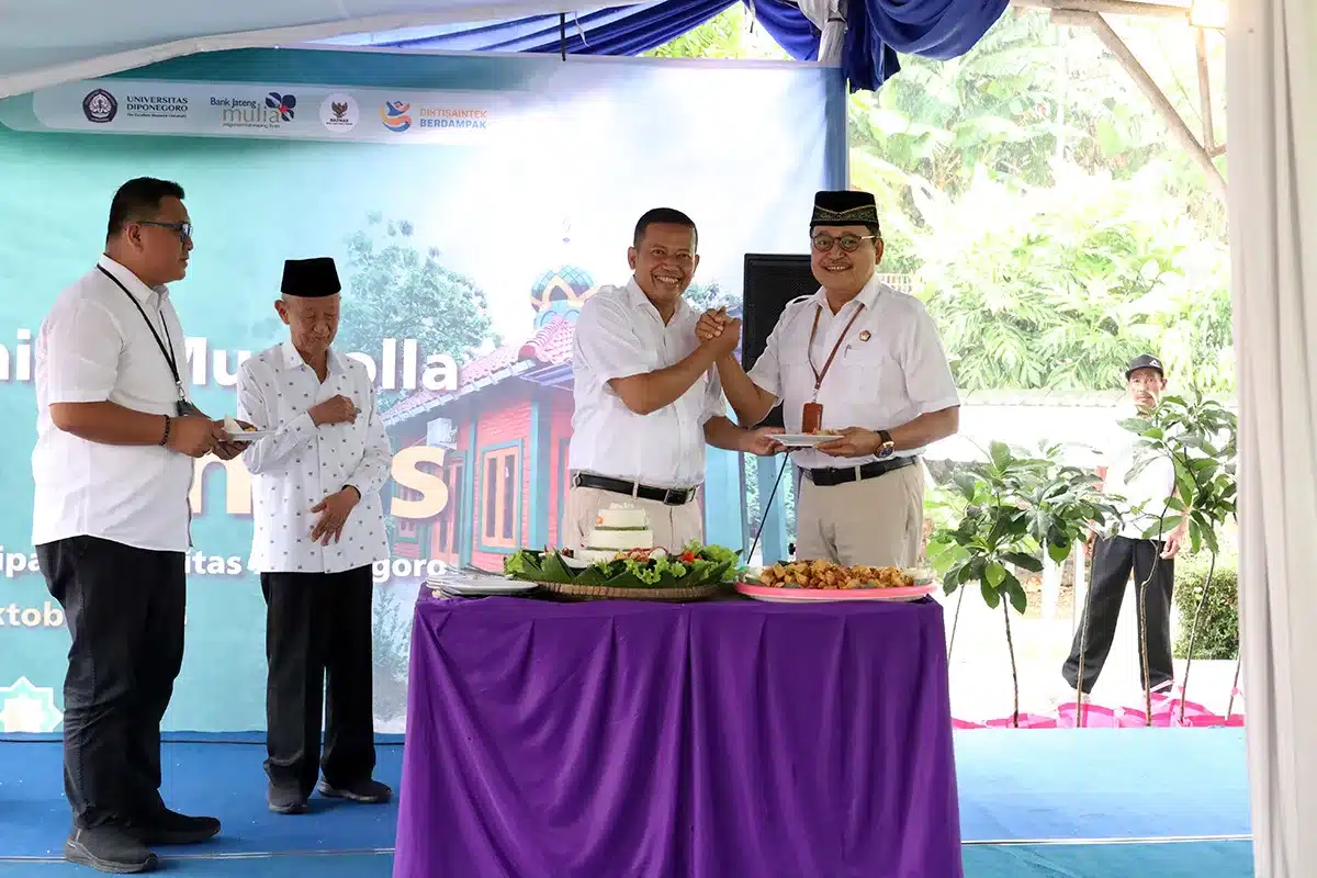 UNDIP, Kab. Semarang (28/10) – Rektor Universitas Diponegoro (UNDIP), Prof. Dr. Suharnomo, S.E., M.Si., meresmikan Musala Al-Ikhlas di Kawasan Hutan Dengan Tujuan Khusus (KHDTK) Wanadipa UNDIP Penggaron, Kabupaten Semarang pada Selasa (28/10) pukul 10.00 WIB. Acara dihadiri oleh Rektor UNDIP, Wakil Rektor IV Riset, Inovasi, Kerja Sama dan Komunikasi Publik, Dekan Sekolah Pascasarjana UNDIP, Direktur Digital dan Bisnis Konsumer Bank Jawa Tengah, Ketua BAZNAS Provinsi Jawa Tengah, Kepala Dinas Lingkungan Hidup dan Kehutanan Provinsi Jawa Tengah, Kepala Cabang Dinas Kehutanan Wilayah III Provinsi Jawa Tengah, dan Kepala KHDTK Wanadipa UNDIP, serta anggota kelompok tani di sekitar KHDTK Wanadipa UNDIP.