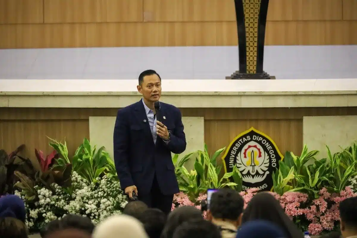 Menutup materinya, Menteri AHY menegaskan bahwa arah pembangunan Indonesia harus semakin hijau, tangguh, cerdas, dan terintegrasi. Konsep green infrastructure, pemanfaatan mangrove untuk perlindungan pesisir, resilient infrastructure serta penguatan smart infrastructure melalui teknologi geospasial, IoT, dan sistem pemantauan risiko perlu menjadi prioritas bersama. Ia juga mengajak generasi muda, termasuk mahasiswa UNDIP, untuk mengambil peran dalam agenda pembangunan masa depan. Menteri AHY turut mengundang UNDIP berpartisipasi dalam Spatial Infra Conex 2026 di Jakarta. “UNDIP adalah mitra strategis dalam membangun Indonesia Emas 2045. Semoga UNDIP terus melahirkan kader bangsa yang unggul dan menjadi kampus berkelas dunia,” ujarnya.