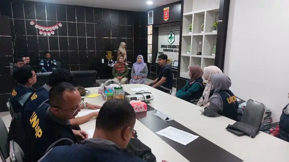 Rangkaian kegiatan diawali dengan pertemuan koordinasi bersama Dinas Kesehatan Kabupaten Agam, yakni Kepala Bidang Pelayanan Kesehatan Sesri, S.Km., M.Km., dan Kepala Bidang Pencegahan dan Pengendalian Penyakit (P2P) Yori Sulistia, S.Km., M.Ph. Pertemuan tersebut membahas penentuan titik lokasi layanan yang akan dikunjungi sekaligus menyelaraskan langkah intervensi kesehatan agar sesuai dengan kebutuhan riil di lapangan.