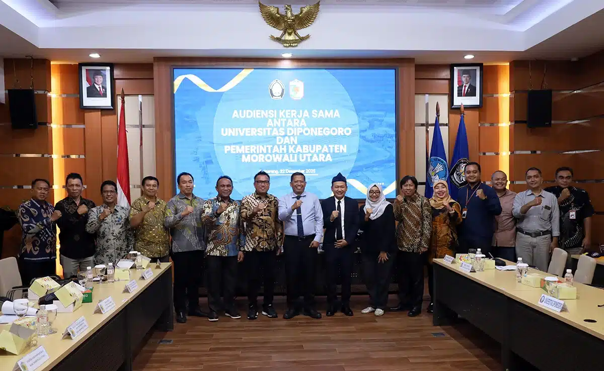 UNDIP, Semarang (23/12) – Universitas Diponegoro (UNDIP) dan Pemerintah Kabupaten Morowali Utara resmi menjalin kerja sama melalui penandatanganan Nota Kesepahaman (MoU) tentang pengembangan Tri Dharma Perguruan Tinggi yang meliputi bidang pendidikan, penelitian, dan pengabdian kepada masyarakat. Kegiatan audiensi kerja sama ini dilaksanakan pada Senin, 22 Desember 2025, bertempat di Ruang Sidang Rektor UNDIP.