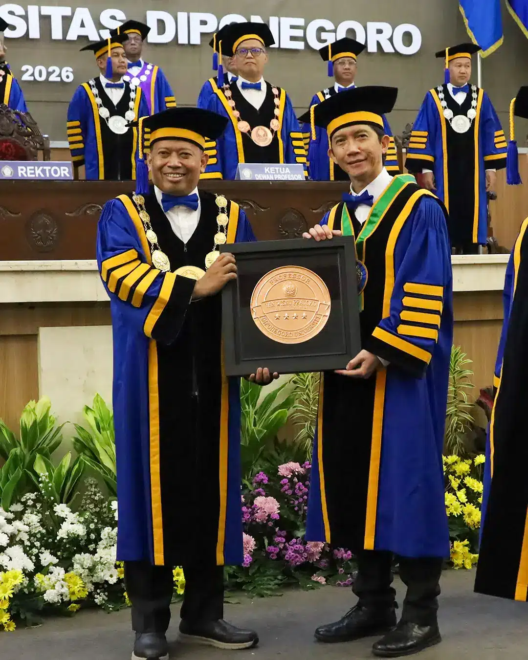 UNDIP, Semarang (26/1) – Universitas Diponegoro hari ini mulai menggelar rangkaian acara pengukuhan 18 Guru Besar UNDIP yang berlangsung di akhir bulan Januari 2026. Acara bertempat di Gedung Prof. Sudarto, S.H. Kampus UNDIP Tembalang. Hari pertama, UNDIP mengukuhkan Empat Guru Besar yang memaparkan temuan-temuan penelitiannya yang berkontribusi serta menjawab tantangan global di sektor kesehatan, lingkungan, infrastruktur, dan tata kelola korporasi.