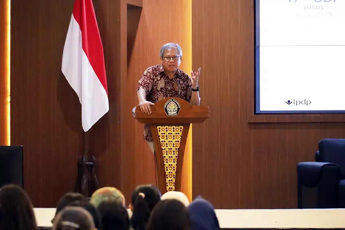 Sebagai narasumber utama, Direktur Beasiswa LPDP, Ir. Dwi Larso, M.SIE., Ph.D., memaparkan kebijakan, mekanisme seleksi, serta peluang studi lanjut melalui program LPDP. Ia menjelaskan bahwa LPDP mengelola dana abadi pendidikan yang dialokasikan untuk menyiapkan sumber daya manusia unggul Indonesia melalui pendidikan berkualitas. “Hingga saat ini, puluhan ribu putra-putri terbaik bangsa telah menerima manfaat beasiswa LPDP. Program ini diharapkan mampu mencetak pemimpin masa depan yang kompeten, berintegritas, dan berkontribusi nyata bagi pembangunan nasional,” jelasnya.