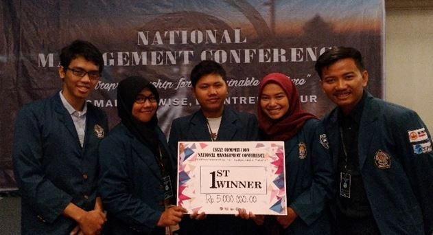 Tim Fabolous Five FEB Undip berhasil menjadi Juara 1 Essay Competition National Management Confrence 2018 UKSW (Univeristas Kristen Satya Wacana). Acara Conference yang digelar di Salatiga pada tanggal 23 – 25 Februari tahun 2018 dilaksanakan oleh Fakultas Ekonomika dan Bisnis UKSW, Salatiga. Acara ini yang merupakan acara yang bertujuan sebagai ajang untuk silaturahmi, bertukar ilmu dan berkompetisi antar mahasiswa manajemen se-Indonesia. Dalam Management Conference (Mancof) juga diadakan acara seminar, pelatihan materi, dan diseminasi hasil skripsi dari mahasiswa UKSW.