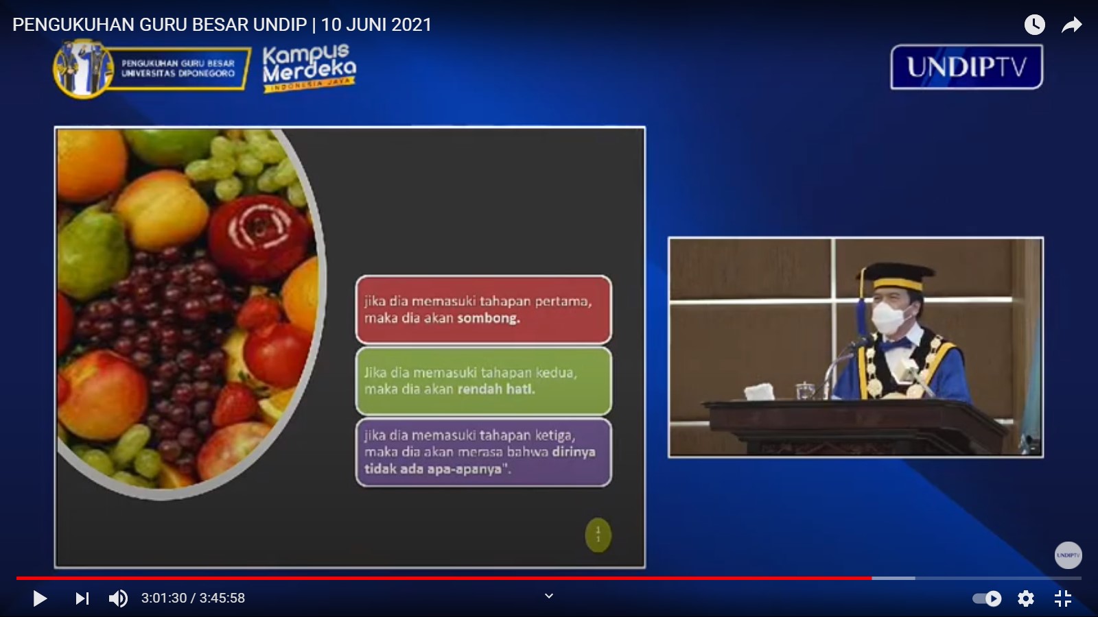 SEMARANG – Rangkaian pengukuhan 21 guru besar di Rektor Universias Diponegoro (UNDIP) yang dimulai 25 Mei 2021, yang dilaksanakan dengan protokol kesehatan yang ketat akhirnya