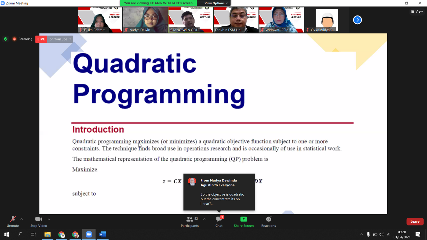 Dukung Kolaborasi dan Riset Matematika, FSM Undip Mengadakan Visiting Lecturer
