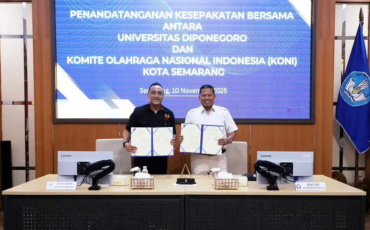 UNDIP, Semarang (10/11) – Universitas Diponegoro (UNDIP) memperkuat komitmen dalam membangun ekosistem kampus yang berdampak melalui penandatanganan Kesepakatan Bersama dengan Komite Olahraga Nasional Indonesia (KONI) Kota